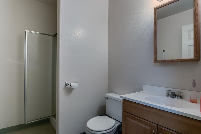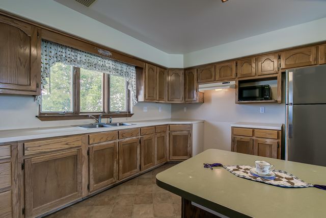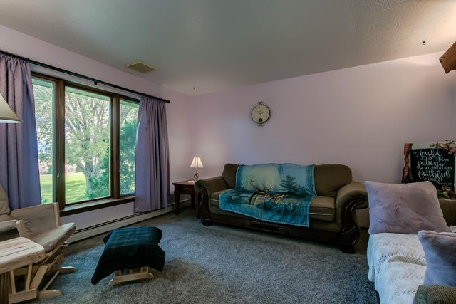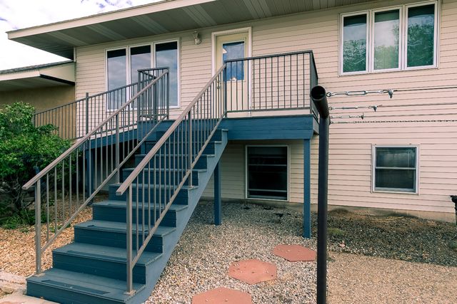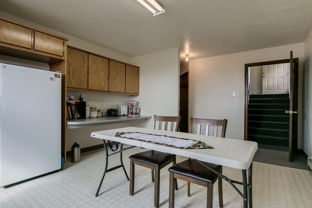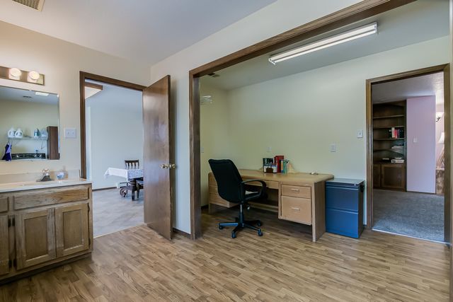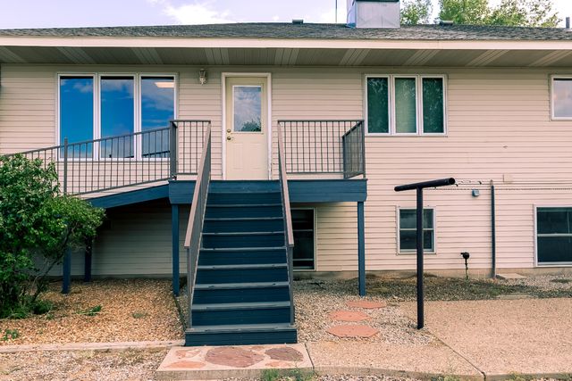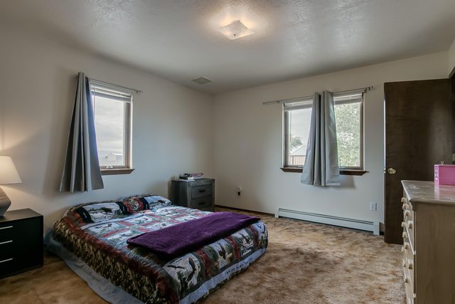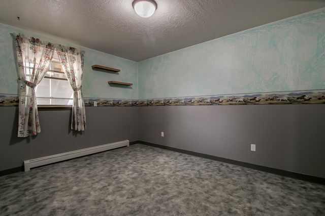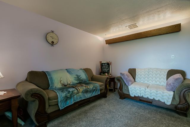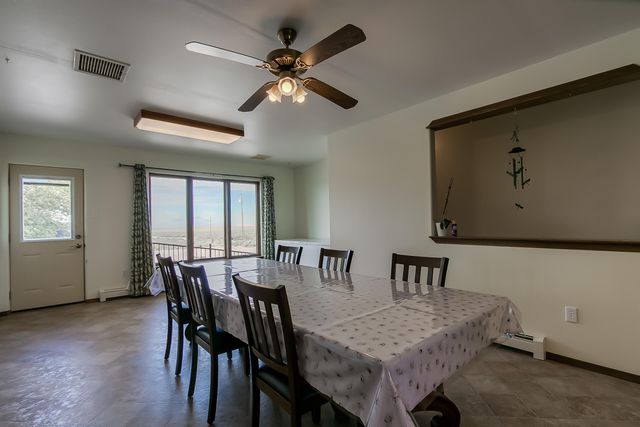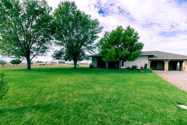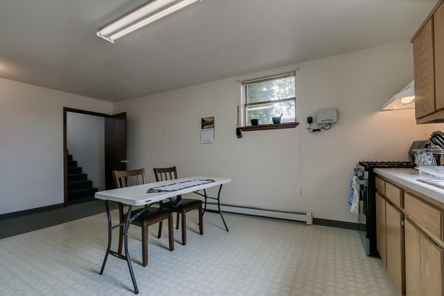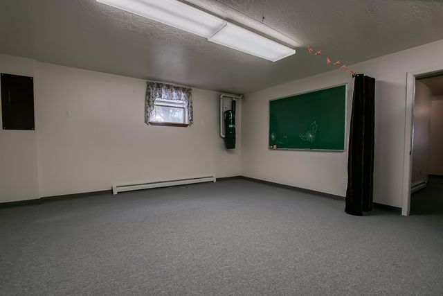 5-acre split-level property with residence, workshop, and agricultural improvements.Upstairs includes a kitchen with vinyl flooring, food prep area, walk-in pantry, oak cabinetry, and large dining area. Spacious family room with large windows w/mountain views, primary bedroom w/ full bath, secondary bedroom, & large laundry w/wash sink, office space & additional full bath. Downstairs includes 2nd kitchen, dining area, three bedrooms, full bath w/ dbl sinks & tub/shower combo, second living area & storage room. Amenities include central vacuum system, Pella thermal double-pane casement wood windows, hot water baseboard radiant heat w/ four zones, & MasterCool evap AC. Roof is pitched asphalt shingle; exterior is vinyl siding w/stucco accents.