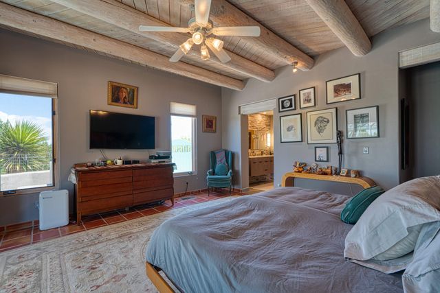 Welcome to your private resort nestled at the base of the foothills in Placitas. 3 secluded acres offering privacy for that summer dip in the pool or hot tub. The inviting floorplan offers elegant classic Southwest styling with a cozy, charming atmosphere. Two custom kiva fireplaces enhance the living and family rooms. A central island with bar seating for four invites lots of helpers in the kitchen. Cozy dining is found off the kitchen & family room with an open design. Formal dining is also included in the living dining combo for those special occasions like dinner with friends. Luxury appliances make cooking a breeze. The rear portale for spectacular Sunset viewing on Sunset Blvd. Follow the sunroom pool & hot tub enjoyment with a hot sauna in the primary bath. You can have it all!